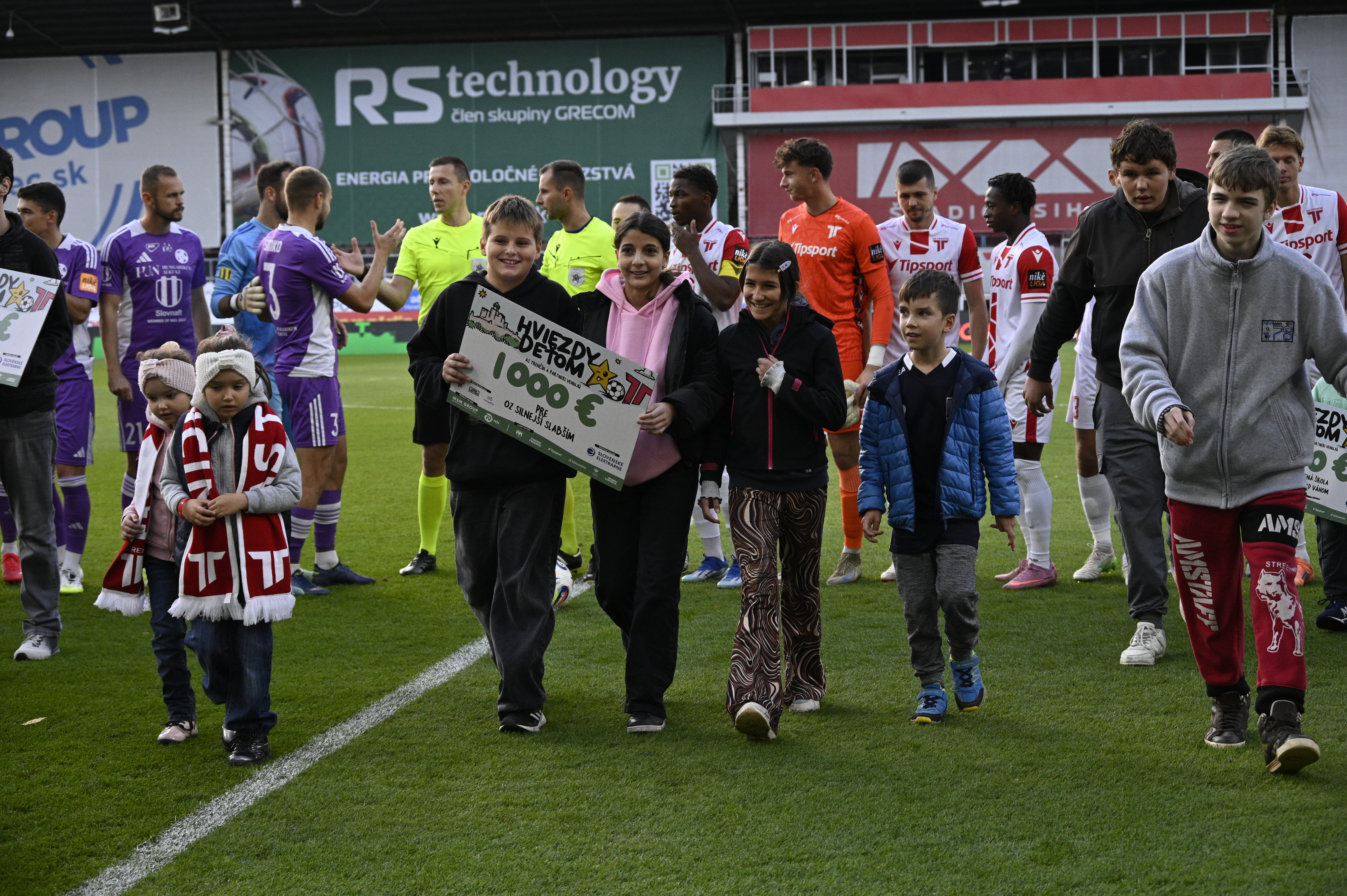 Pred zápasom AS Trenčín proti KFC Komárno sa na trávniku neodohrávali len športové momenty, ale aj tie ľudské, keď klub odovzdal symbolické šeky až takmer 30 vybraným subjektom, ktoré boli podporené z výťažku charitatívneho projektu Hviezdy deťom 2025.