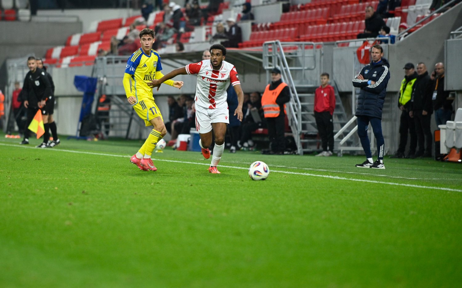 Do prvej šance sme sa dostali už v úvodnej minúte, keď zakončoval Sabljić, no lopta skončila len na žrdi. Po úvodnej päťminútovke sa začali pred Katičovu bránu dostávať aj hráči Košíc. V 16. min sme po rohovom kope opäť opečiatkovali konštrukciu brány mladíka Kalanina. V 21. min zaváhala naša obrana, keď Bessilé hlavou prihral pred nabiehajúceho hráča hostí, no situáciu sme napokon odvrátili na rohový kop. O tri minúty neskôr sme po štandardnej situácii ohrozili Kalaninovu bránu, avšak lopta letela len tesne nad. Krátko nato musel ihrisko pre zranenie opustiť Križan, ktorého nahradil Kranthove. Po polhodine hry sme si vypracovali ďalšiu šancu po štandardke, ktorej chýbalo len málo, aby skončila gólom. Pred koncom prvého polčasu sa blysol výborným zákrokom navrátilec Katić. V 44. min sme sa dočkali zaslúženého vedenia, keď po rohovom kope využil chybu Sabljić – 1:0.